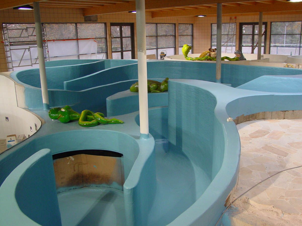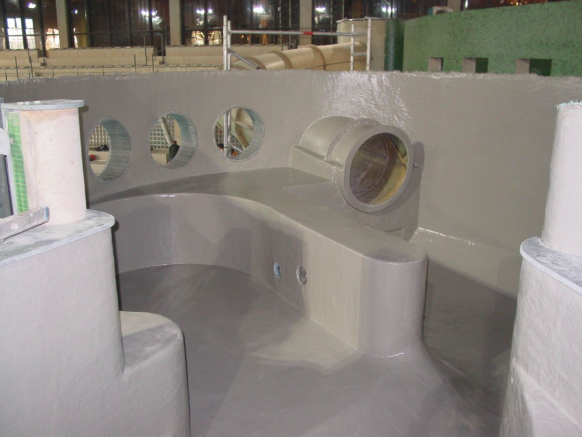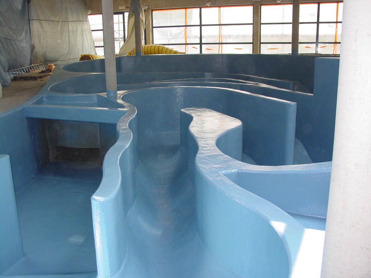 Une de nos spécialités est le revêtement en polyester des attractions aquatique.